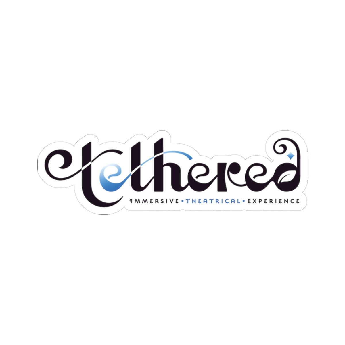 A glossy kiss-cut sticker that brings a touch of theatrical flair to everyday surfaces. The elegant, flowing script and subtle blue highlight read as both modern and whimsical—perfect for fans of immersive experiences, performance art, and creative spaces. Stick it on a laptop, journal, or window to quietly signal your connection to live storytelling and community-driven theatre. The glossy finish deepens the black tones and makes the blue pop, giving the design a polished, collectible feel that complements creative setups and backstage kits alike.