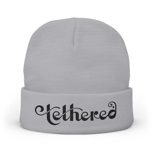 Embroidered Tethered 2025 Knit Beanie — Cozy Winter Hat with Script Embroidery
