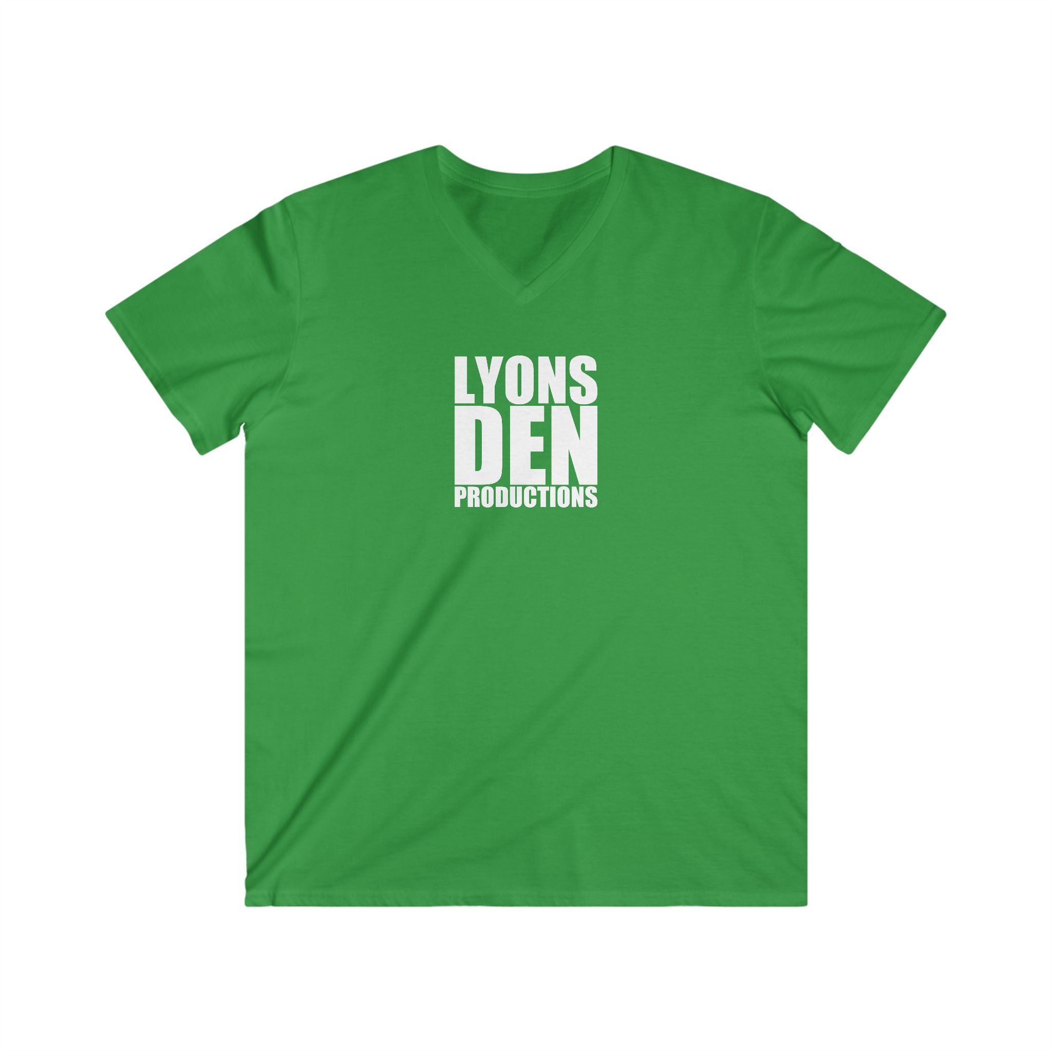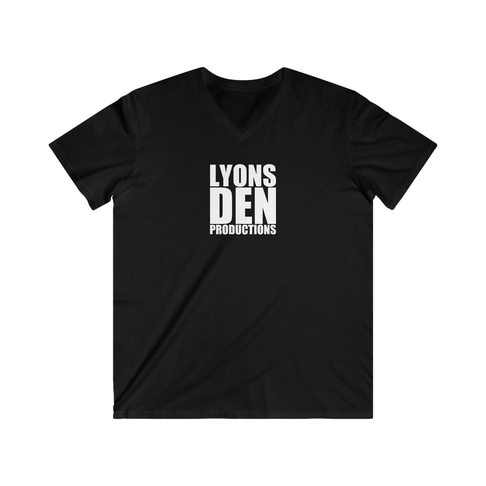 Lean, bold, and quietly confident. This fitted V-neck tee carries a stacked, high-contrast logo on a soft black field — a look that speaks like a small, relentless production company: focused, compact, and unafraid to be seen. Lightweight cotton drapes close to the body without clinging, so it layers easily under a jacket or stands on its own during late-night rehearsals, studio runs, or casual pitch meetings. The ribbed V collar keeps its shape after repeat wears. Finished with a tear-away label and neat shoulder taping, it’s built for long days and late edits.